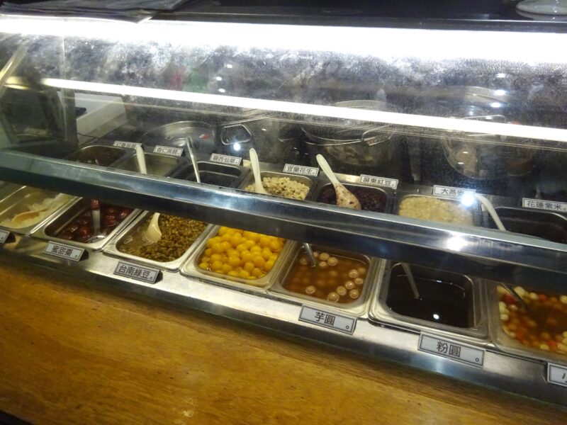 トッピングは、ショーケースを見て、あずきと芋圓をチョイス。