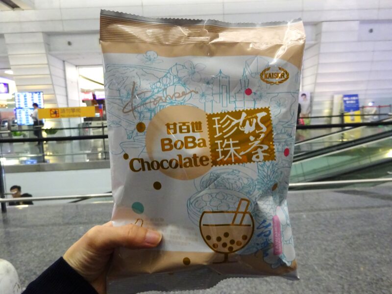 空港のショップで、タピオカミルクティ味のチョコを買ってみた。