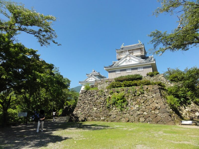 高い石垣と木造が印象的なお城。